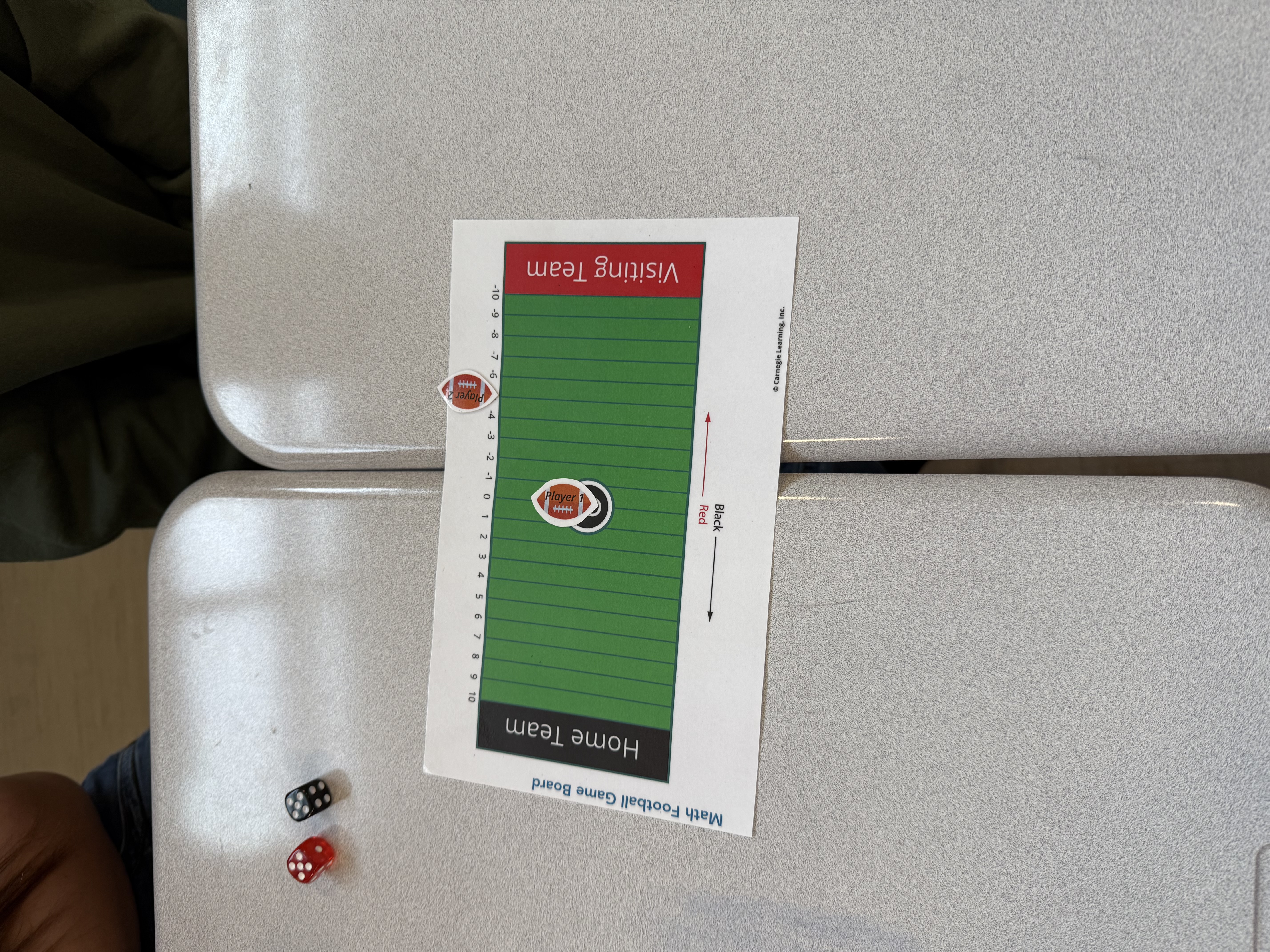 Seventh graders in Mrs. Eggert's room are playing football to learn how to add integers.