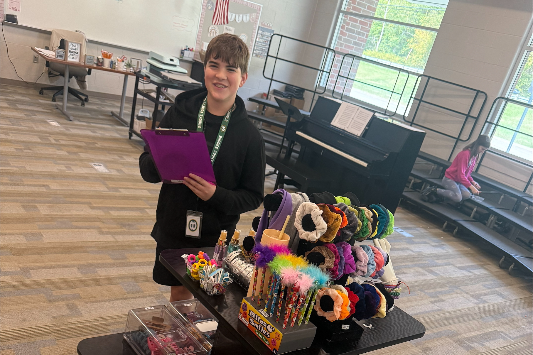 Bruin’s Cave is an elective class for 8th-grade students. In this class, students will not only be expected to work in a simulated workplace (Bruin’s Cave Store), but they will also complete assignments that teach them the inner workings of running a business. Students are expected to create advertisements for products that are sold in The Bruin’s Cave, work in the store on scheduled days, and use the Cricut machine to create personalized items for customers. They must also learn how to operate the cash register and count money.